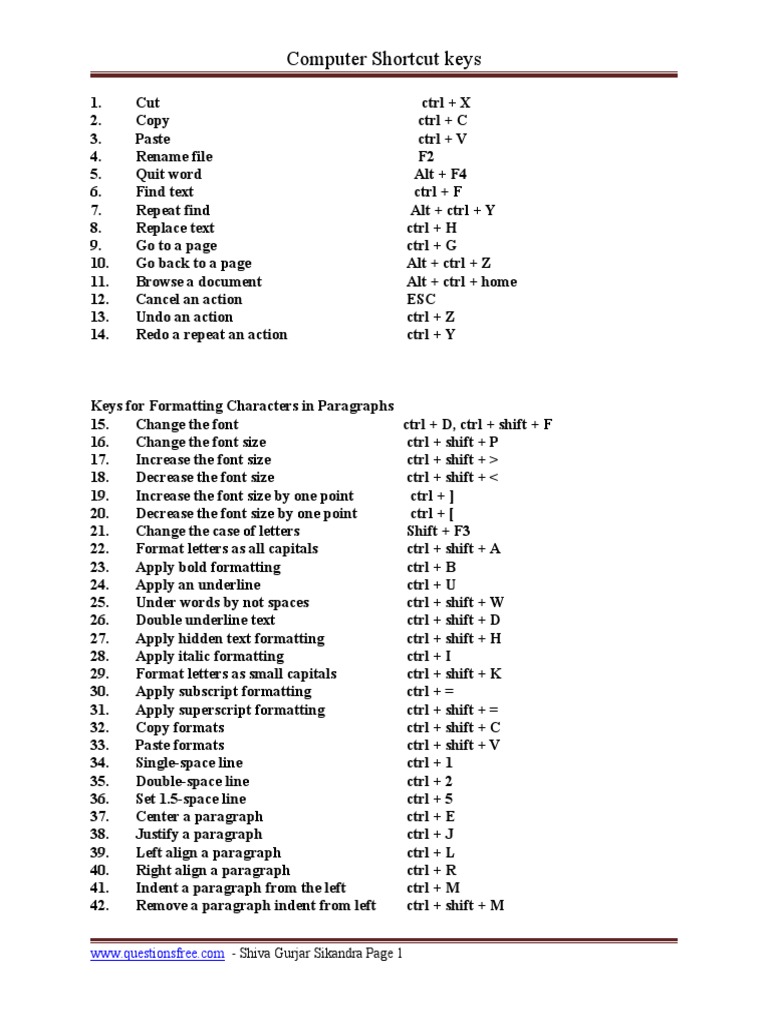 Learn vocabulary, terms and more with flashcards, games and other study tools. By using simple keyboard shortcuts in the workplace, you can increase your productivity and cut back on the strain caused by repetitive motions. Most shortcuts serve to eliminate additional. This post includes basic keybaord shortcut keys.we can expect questions from this topic in upcoming exams. Explore the ctrl and f keys shortcuts and usage.